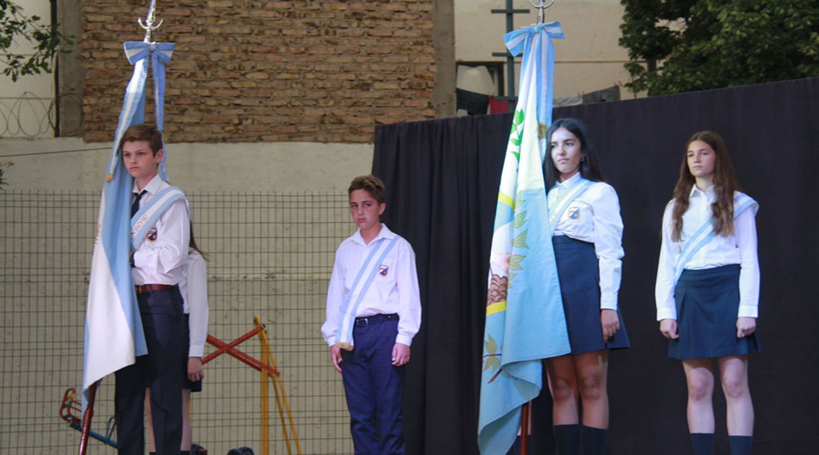 Todos los alumnos se lucieron en un impecable acto artístico que llenó de gracia y color el patio del establecimiento. Frente a ellos las familias, directivos y docentes aplaudieron sonrientes al ver a los chicos en el escenario.