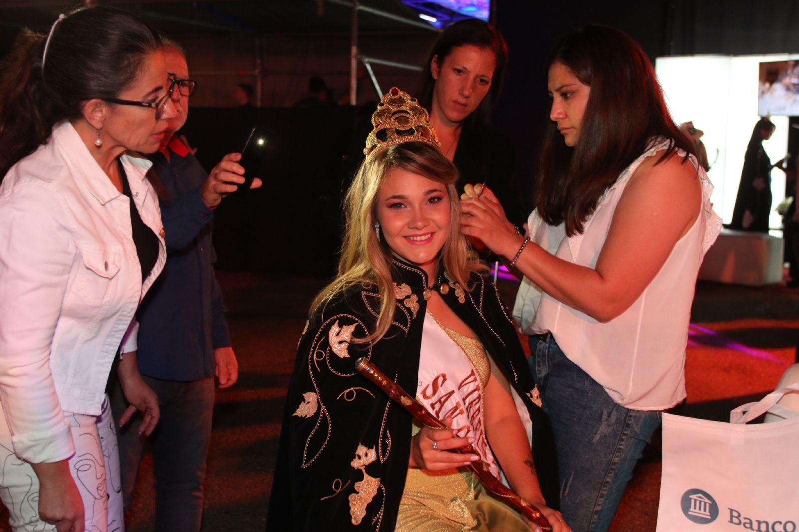 Luego de los invitados fue el turno de las reinas y virreinas departamentales, quienes de manera espontánea, se agruparon para pisar uvas con gran entusiasmo y bajo la luz de decenas de flashes.