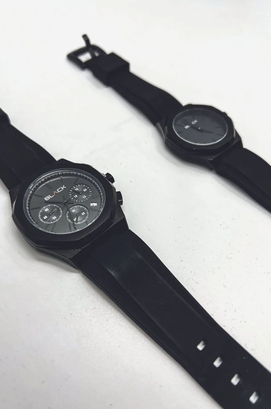El diseño del Black Chronograph de Actively es simple, acorde con un reloj deportivo robusto y apto para usar debajo del agua. Su forma octogonal se parece a la de un reloj Audemars Piguet Royal Oak, y a primera vista muchos usuarios de internet lo confundieron con uno.