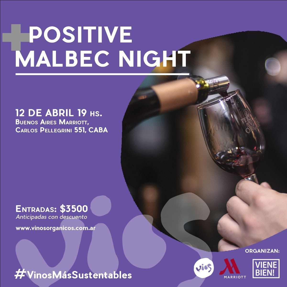 Organizada por VIOS, Viene Bien! y Buenos Aires Marriott, vuelve Positive Malbec Night: el evento que reúne a los grandes malbec argentinos de impacto positivo del país, donde se presentarán vinos orgánicos, biodinámicos, sustentables y de Comercio Justo.