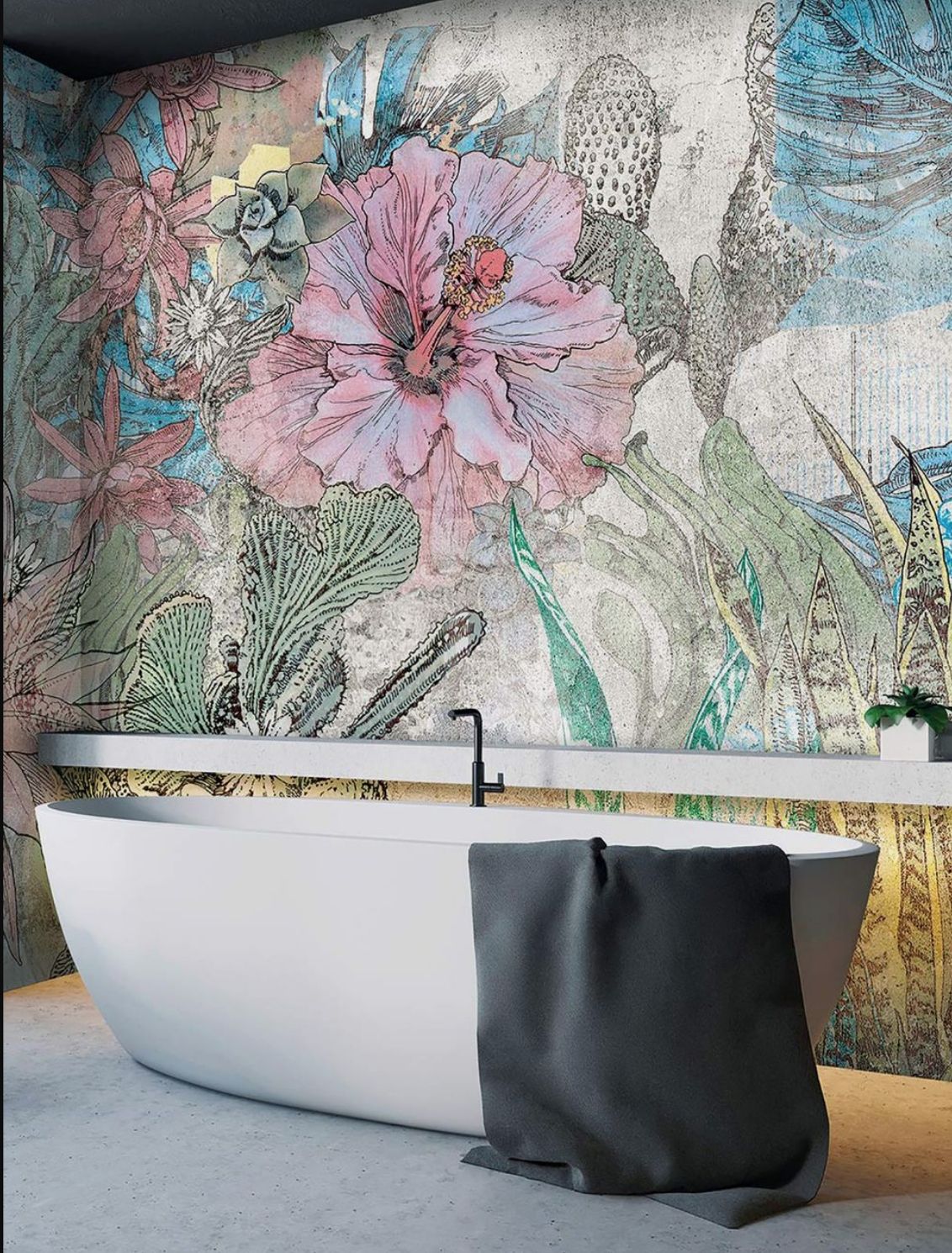 Por un lado, lo rústico se vuelve cool y la madera forma parte de los cuartos de baño como un elemento que aporta calidez, simpleza y los tonos infalibles de la naturaleza. Por el otro, llegan los estampados botánicos y florales como una opción más allá de los clásicos azulejos para aportar un toque romántico y convertir el cuarto de baño en un espacio fresco.