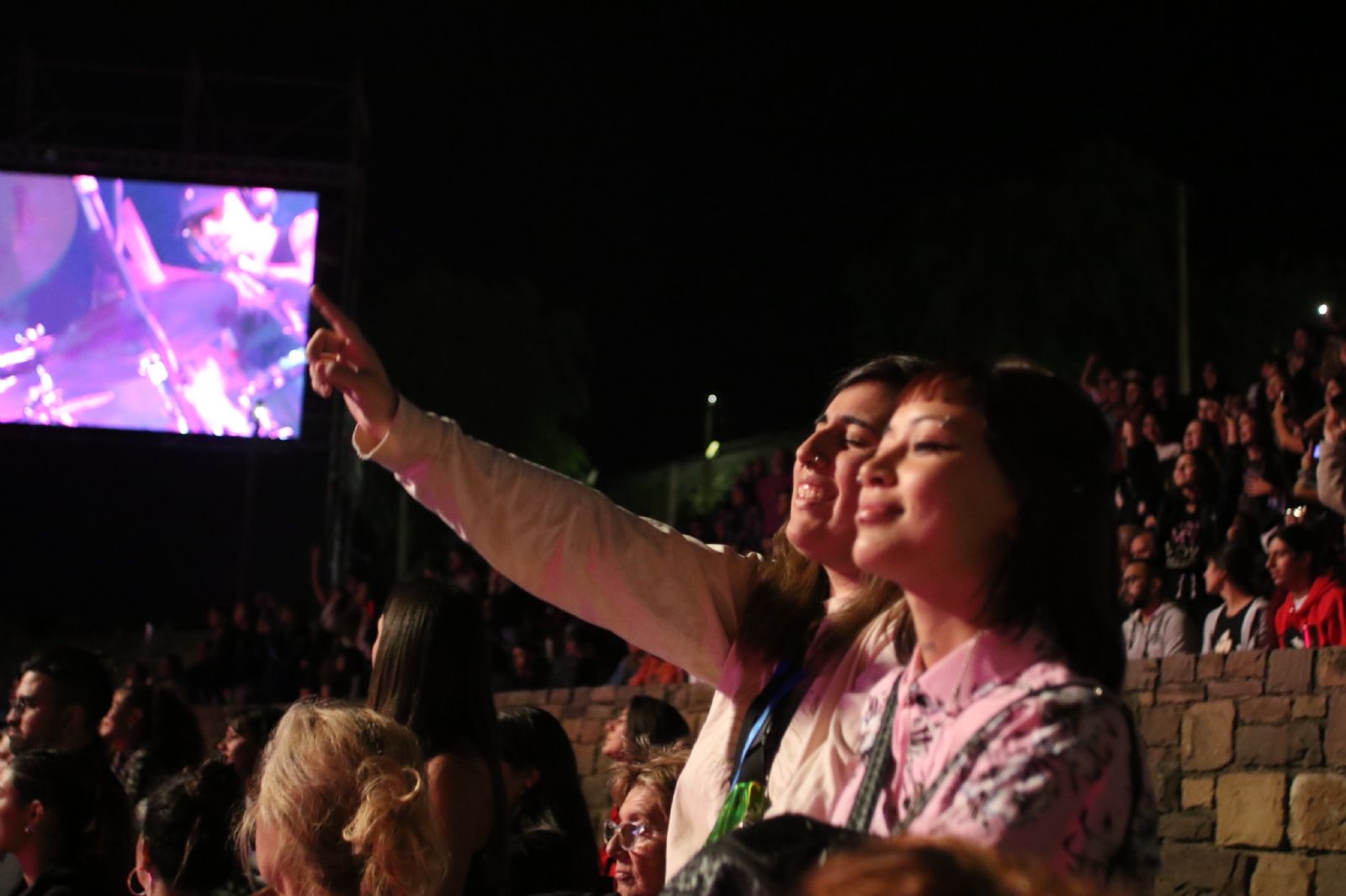 Luego de una introducción y presentación, el Teatro Griego escuchó los primeros acordes de unos de sus hits Colocao, donde grandes y jóvenes bailaron y cantaron.