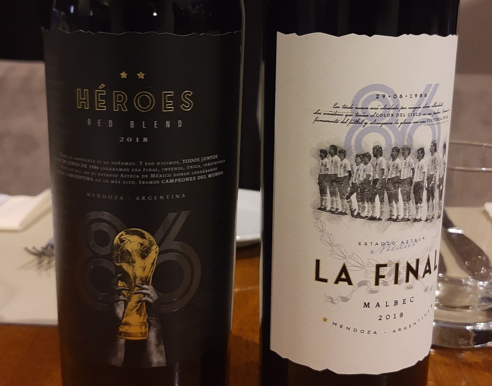 Con prensa especializada en la materia, se probaron los vinos con un menú maridado en el Hotel Hyatt de Mendoza, en su restaurante Bistro M. El glorioso plantel de fútbol que ganó el Mundial del ’86 se lanza al mercado de vinos con dos etiquetas. Con uvas de Agrelo, y de la mano de la enóloga Denis Vicino de Mendoza Vineyards, salen a la luz La Final Malbec y Héroes Blend.