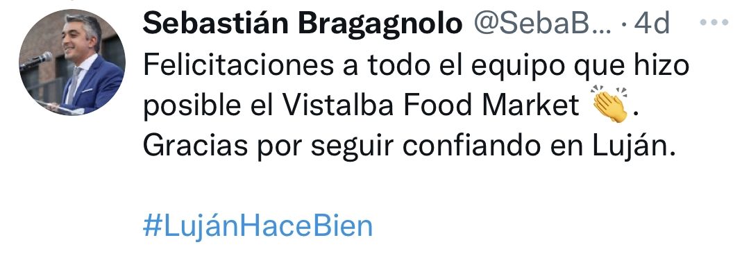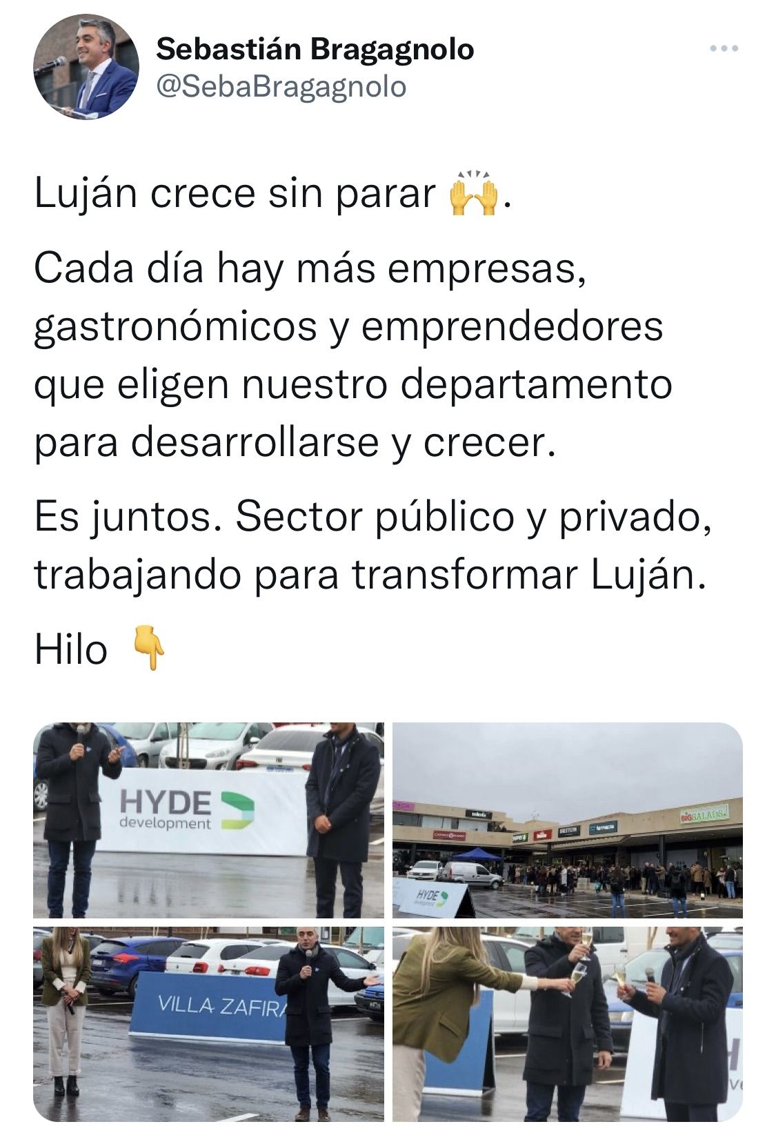El intendente de Luján de Cuyo, Sebastián Bragagnolo, dijo presente y hasta pidió el micrófono para dirigirse a todos y manifestar su alegría por este nuevo espacio comercial que engalana al departamento.