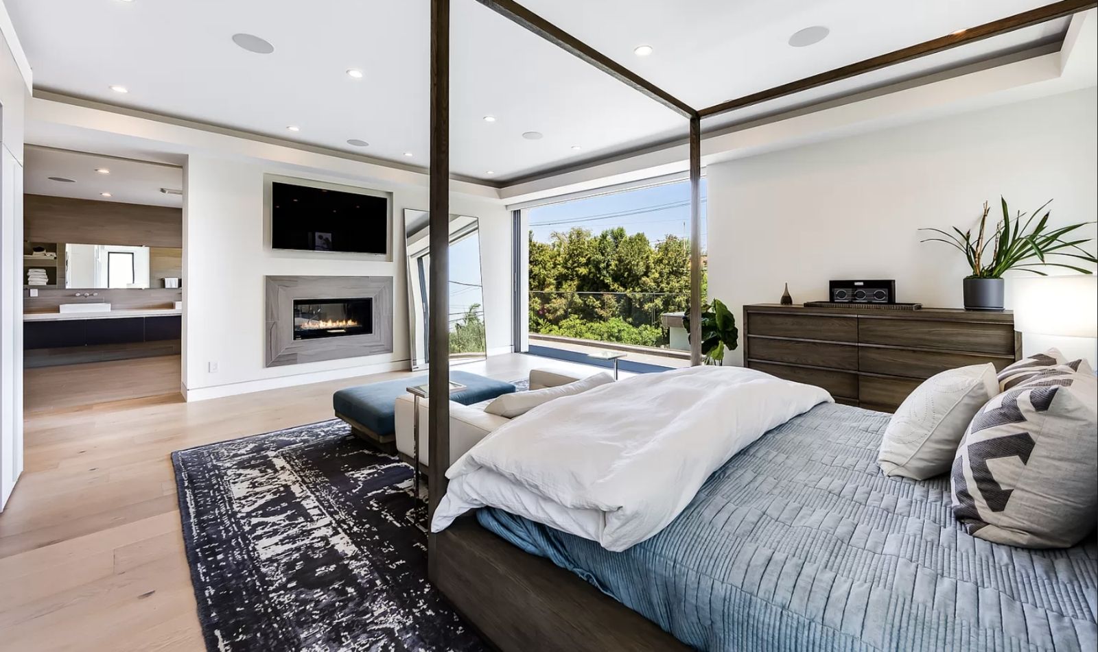 El cuarto principal tiene un enorme armario con espacio para 120 pares de zapatos y, como si fuera poco, ofrece una vista privilegiada del letrero de Hollywood. Además de una bañera de hidromasaje y espacio para personalizarlo.