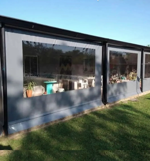 Toldos verticales de lona de PVC cristal transparente es uno de los recursos y materiales más elegidos. Son lonas vinílicas translúcidas o transparentes que pueden elegirse en diferentes espesores, y su ventaja es que son muy resistentes y de fácil limpieza.
