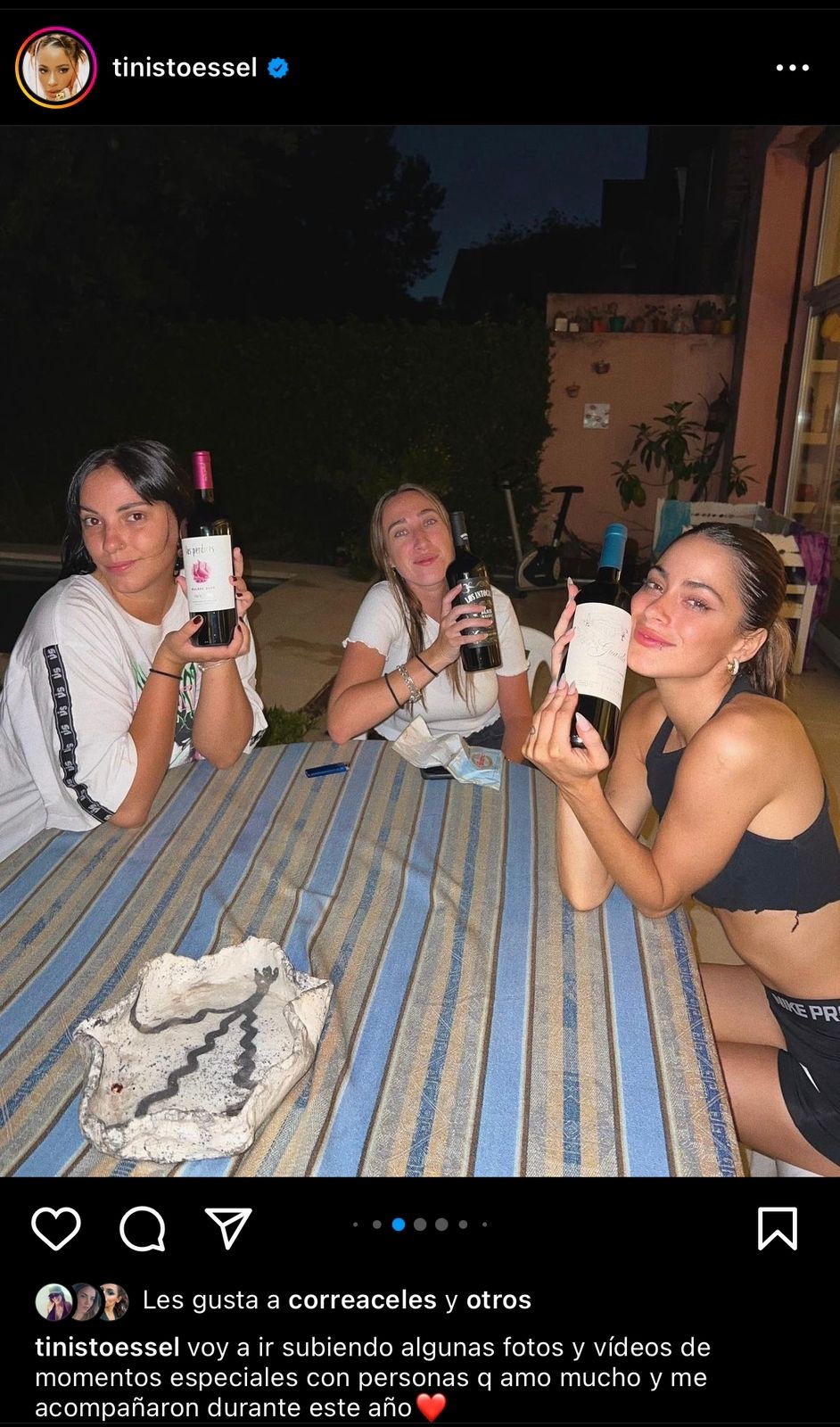 Tini Stoessel usó sus redes para recordar quienes la acompañaron este año que terminó y en una de sus fotos publicadas en Instagram, junto a dos amigas, pudo mostrar los vinos que elige para brindar.