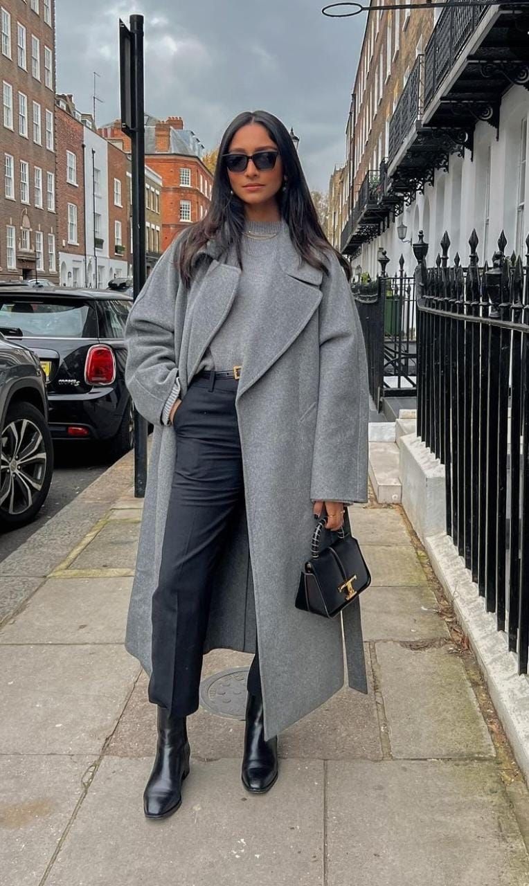 Para lograr un estilo minimalista usando un clásico pantalón negro, elegí un pantalón recto suelto y combinalo con un sweater al cuerpo, puede ser un cardigan o un sweater cuello tortuga en tonos grises. Terminá el look sumando un tapado camel y botas negras o mocasines. Si querés sumarle luz a este look elegí piezas metálicas de tu colorimetría y de diseño simple.