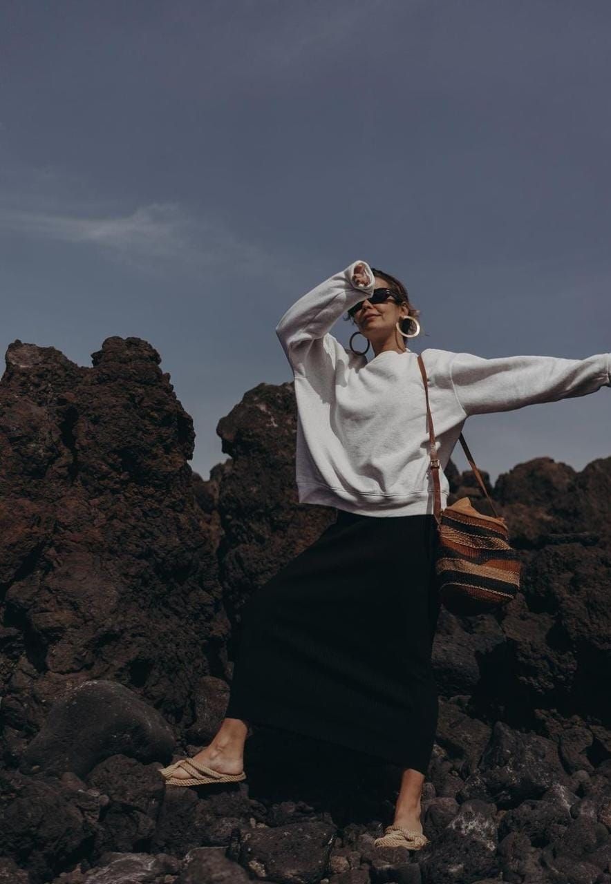 Muchas veces encasillamos al pantalón negro como una prenda de oficina, pero es momento de que empecemos a pensar combinaciones más allá del espacio de trabajo. Un pantalón negro slouchy combinado con un buzo estampado y zapatillas urbanas te va a dar el estilo descontracturado de las influncers del escandinavas. Termina el look con una gorra con visera.
