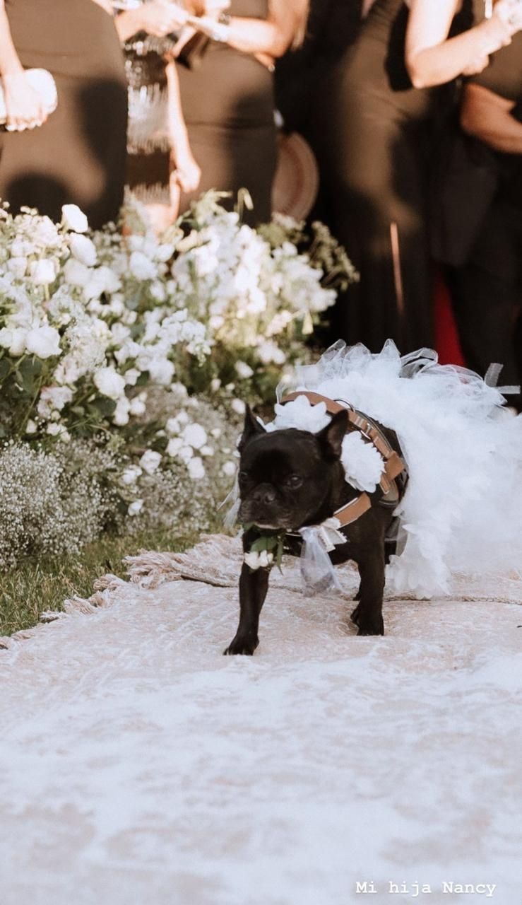 La singular ceremonia civil, contó con la presencia especial de Nancy, quien deslumbró a todos luciendo un tul a juego con la novia. La perrita, parte fundamental de la vida de Pérez y Mazzoni, caminó hacia a ellos por el altar, protagonizando un momento tierno y lleno de emoción.