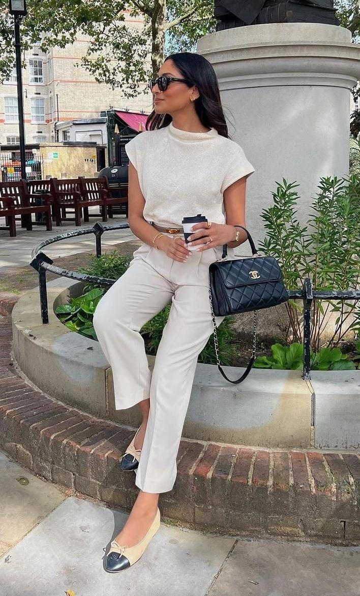 Si buscás looks cómodos para el trabajo, las ballerinas son el complemento ideal. Elegí llevarlas en tonos oscuros y combinadas con un pantalón sastrero al cuerpo (mejor si no es demasiado oversize) y chaleco. Este outfits minimalista no solo es atemporal, sino que además tiene la dosis justa del estilo smart casual.