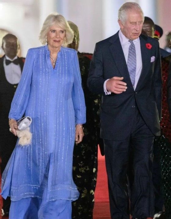 Durante una cena a la que asistieron en Kenia, Camilla Parker Bowles deslumbró con un elegante vestido en tono lila azulado que realzaba su elegancia y distinción. Acompañada por el rey Carlos III de Inglaterra, la pareja real fue recibida calurosamente por el gobierno y las autoridades del país africano, consolidando así los lazos diplomáticos entre el Reino Unido y Kenia.