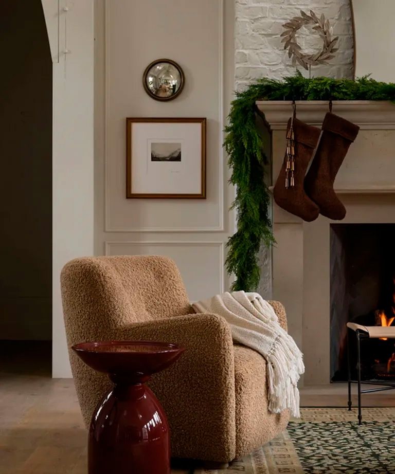 Crear una sensación mejorada de comodidad y calidez en el espacio interior a través de abundante textura táctil no solo es una manera fácil de renovar la propia decoración para la temporada navideña, sino que también puede funcionar perfectamente para una decoración navideña minimalista.
