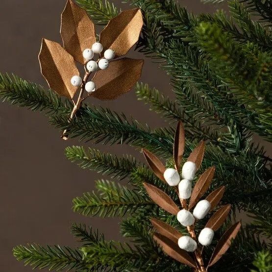 Las hojas y las flores navideñas siempre van a estar en el centro de la decoración navideña, sin importar su estilo. Desde coronas navideñas hasta guirnaldas navideñas pueden funcionar maravillosamente en un esquema minimalista.