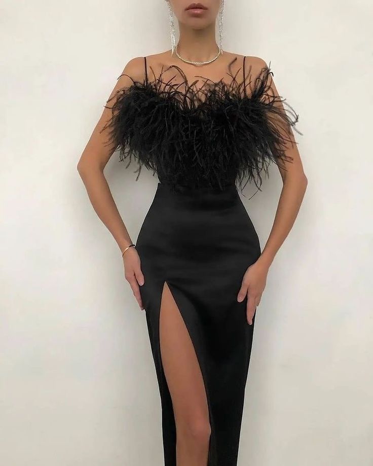 Las plumas agregan un elemento de sofisticación y ligereza a los outfits, ya sea como detalles en las mangas o en faldas y vestidos completos.