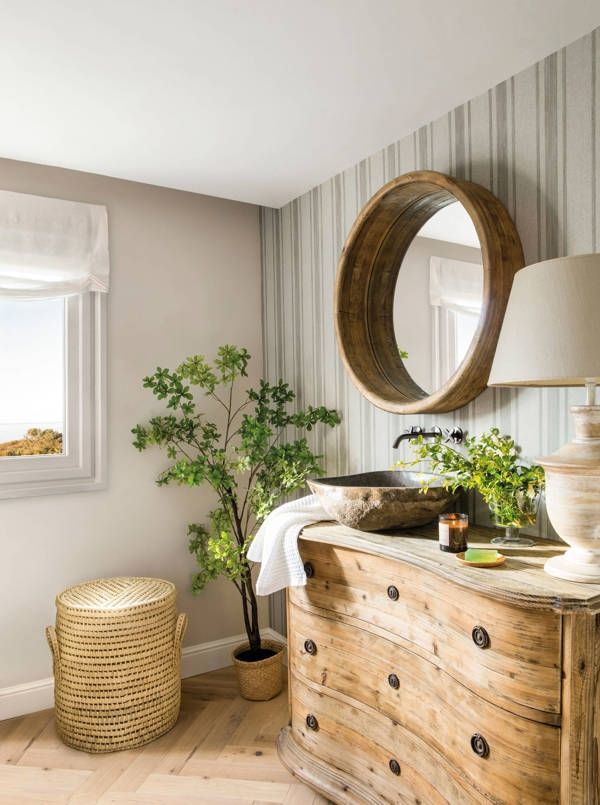 3. El espejo. Es otro elemento que contribuye a la elegancia y al toque personal que quieras darle a tu baño. Si cuentas con dos lavamanos, puedes colocar dos espejos iguales en pareja. Su verticalidad ayudará a conseguir que el techo se vea más grande.