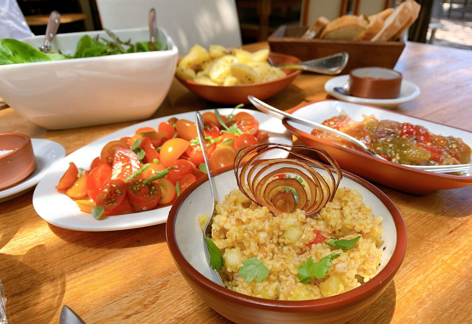 Ensaladas y mariscos: es común incluir ensaladas frescas y mariscos en la mesa, pueden contener ingredientes como lechuga, tomate, cebolla y pimientos.
