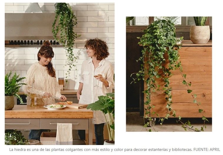 La hiedra es una de las plantas colgantes con más estilo y color para decorar estanterías y bibliotecas. FUENTE: APRIL