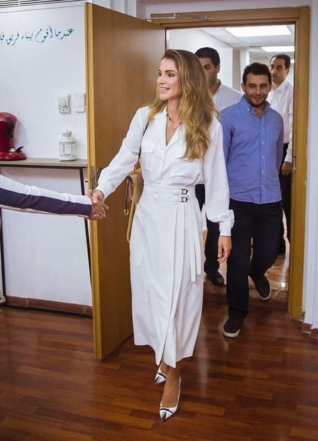 Rania de Jordania suele lucir estilismos formales en su día a día, pero siempre con un toque de tendencia.