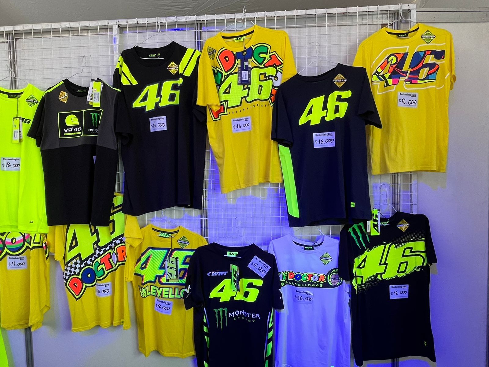 Los artículos de Valentino Rossi son los más buscados, en este local se consiguen remeras de "El Doctor" por $16.000, gorras por $15.000 y buzos a $30.000. Mientras que las remeras de MotoGP se encuentran a $9.000 y las gorras a $8.000.