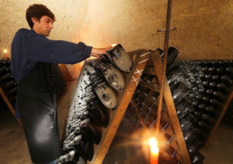 El "remuage" (remoción o trasiego) sigue siendo una parte crítica del proceso de producción de champán. Un técnica ideada por la viuda Clicquot.