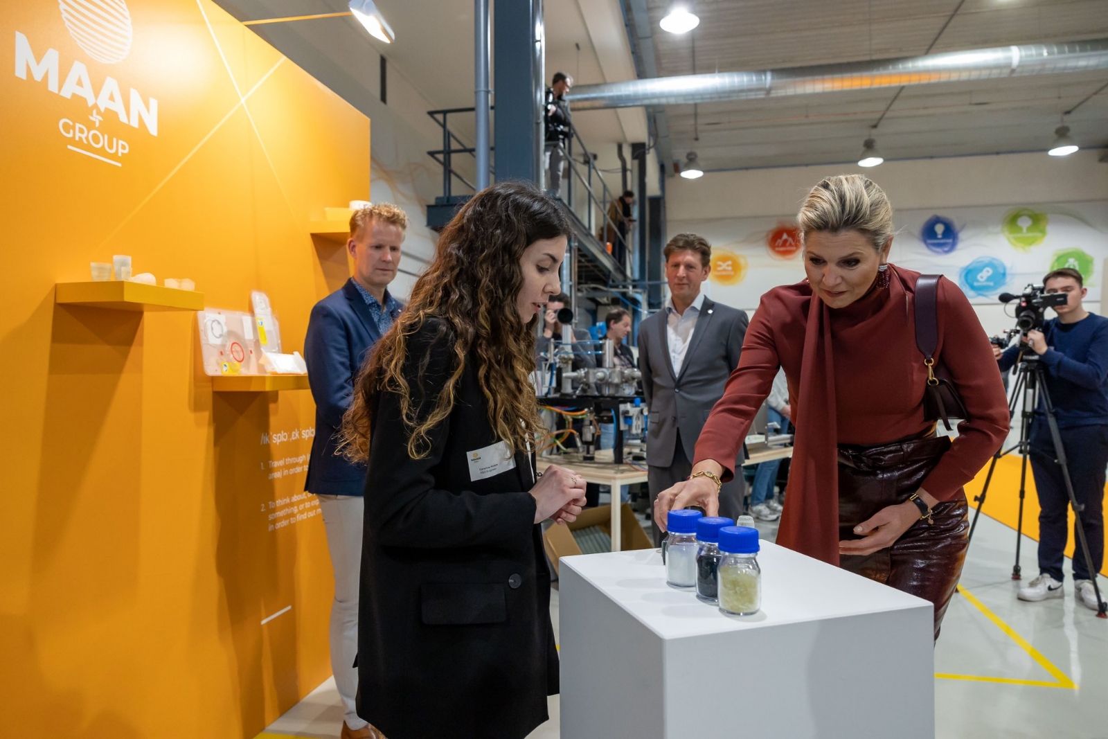 En una de sus últimas visitas de agenda oficial previa a la gran celebración por los diez años de su coronación como reina consorte, Máxima, en su carácter de presidenta de honor de la Fundación Rey Willem I, ha visitado, en Raalte, la empresa Man Group, quien se ha convertido en especialista en el campo de los recubrimientos termofusibles, la tecnología de precisión y los biopolímeros.