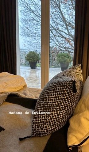 En la imagen tomada por Juliana Awada, que fue acompañada con el mensaje "Mañana de invierno", se observa de fondo un balcón precioso decorado con dos macetas de cipreses enanos y una baranda de hierro en estilo francés.