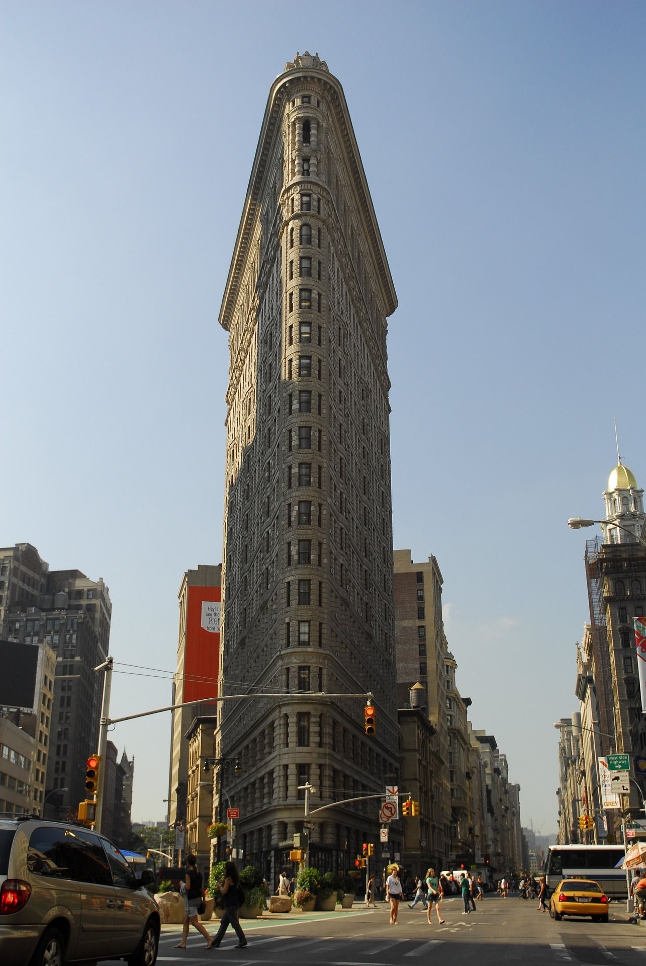 El Edificio Flatiron (Flatiron Building) de Nueva York (86,9 metros de altura y diseñado por Daniel Burnham y Frederick Dinkelberg) tiene 22 pisos y se convirtió en uno de los edificios más altos de esa ciudad estadounidense tras su finalización en 1902
