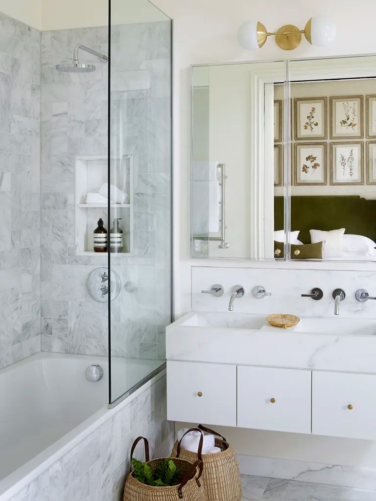 3. Optar por la iluminación regulable. Como la iluminación de un baño incide siempre en el objetivo que se proponga para ese espaciosi el objetivo es que sea un espacio relajante entonces el camino será una iluminación ajustable, con atenuadores y luces LED suaves, para así crear una experiencia similar a la de un spa, y combinarla con el suave brillo de las velas aromáticas (como podrían ser las de lavanda y manzanilla).
