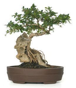 2. Bonsái de Ficus. Es el tipo de bonsái es popular por su versatilidad y sus formas únicas de tronco. Una de las características que los hace más populares es su capacidad para desarrollar raíces aéreas, lo que sólo puede ocurrir si se encuentran en un ambiente húmedo. Requiere un riego regular, pero puede soportar un riego insuficiente o excesivo ocasionalmente. Necesita luz brillante o indirecta y temperaturas muy suave.