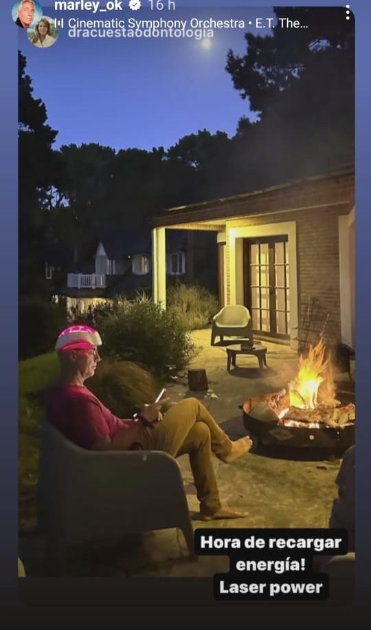 El conductor se dejó ver relajándose en uno de los cómodos sillones dispuestos alrededor del fogón, creando un ambiente propicio para disfrutar de momentos de calma y contemplación. Con los pies descalzos cerca del fuego, Marley aprovechó para compartir la sensación cálida y reconfortante que ofrece esta área al aire libre.