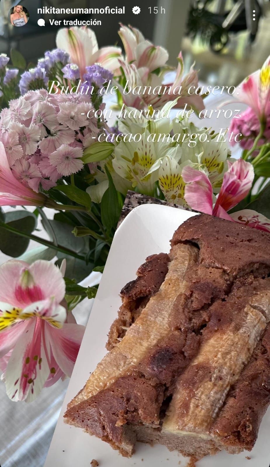 "Con harina de arroz, cacao amargo, etc", escribió Nicole Neumann en su publicación, con respecto a los ingredientes sanos que eligió para su budín. Se trata de una receta más de las del estilo que la modelo siempre hace: súper sanas y ricas.