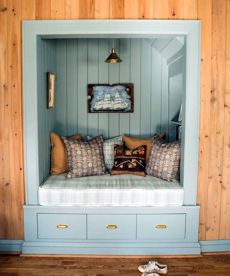 4. Habitación con un rincón. Se puede usar el color para realzar ese rincón incorporado y adaptarlo al propósito deseado (como lo pueden ser, en ese rincón, un espacio para leer o trabajar).