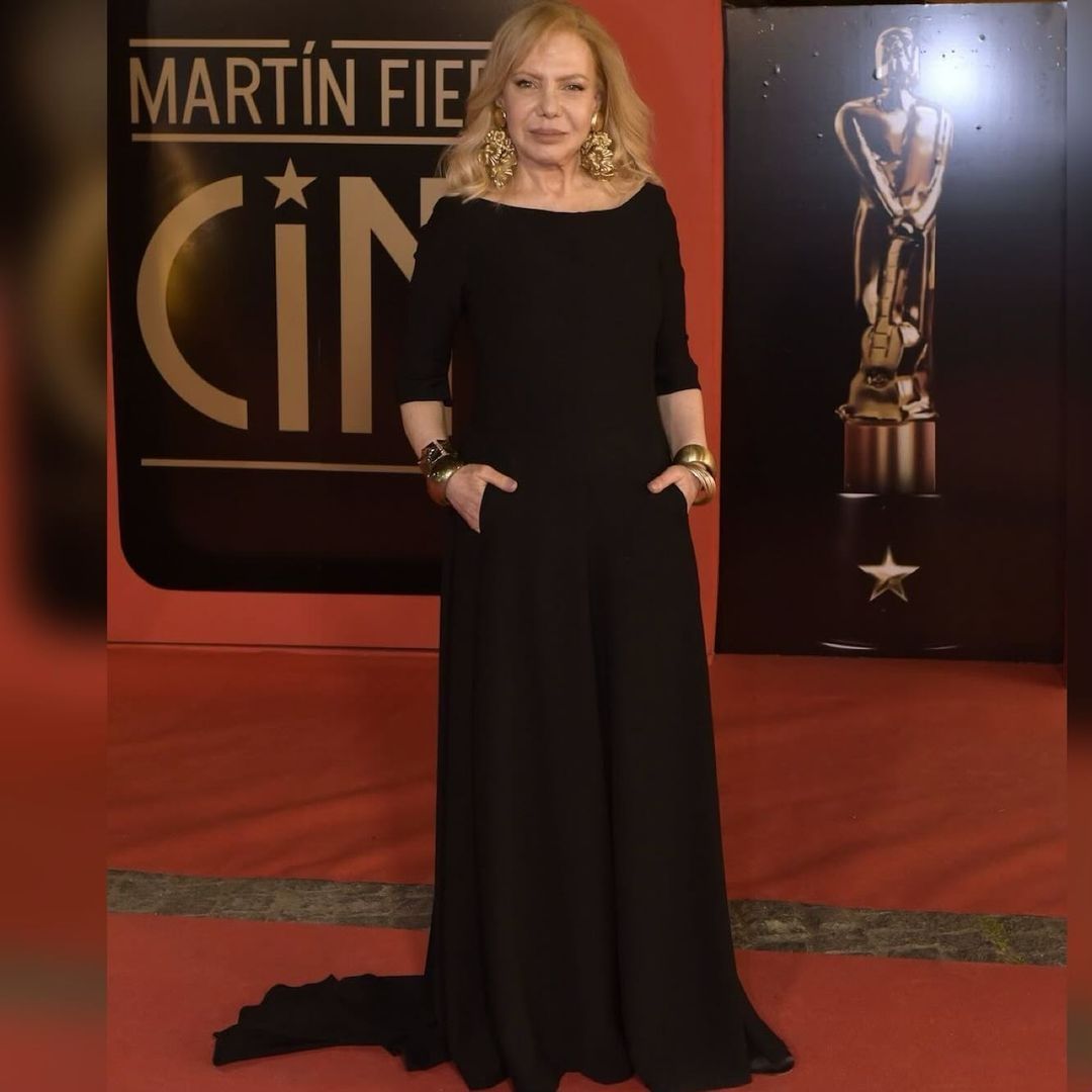 Cecilia Roth también eligió el total black, con un vestido de Ramírez. La consagrada actriz acudió a los Martín Fierro de Cine y Series luciendo una pieza clásica, de amplio escote redondo, mangas 3/8 y falda plisada con bolsillos. El toque de sus brazaletes dorados a tono con su cabello fue una decisión 100% fabulosa.