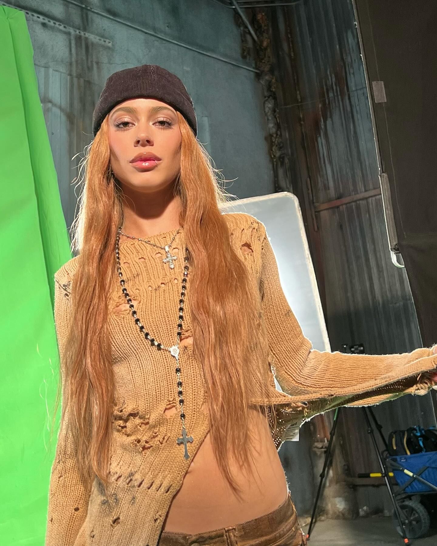 El look no termina en el cabello. Tini también combinó su nuevo color con un maquillaje que resaltaba sus ojos: sombras metalizadas en tonos marrones y un delineado negro sutil que le dio una mirada intensa. En cuanto a la vestimenta, eligió un suéter asimétrico beige, tejido y con detalles desgastados, perfecto para completar este nuevo estilo.