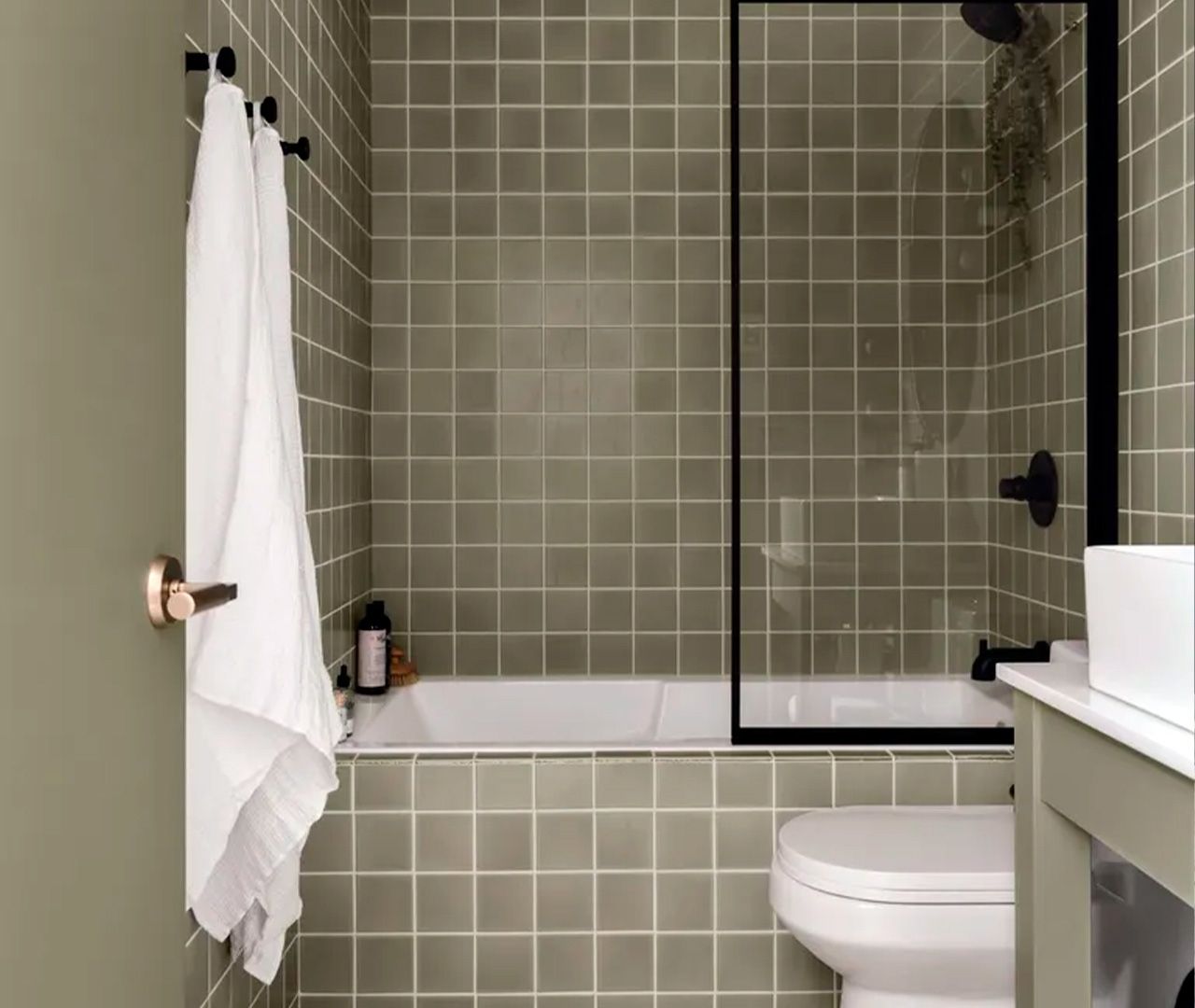 La forma y la disposición de las baldosas modifican el aspecto general de este espacio, ya que la aplicación de mosaicos le da una sensación de gran diseño, cohesión e intencionalidad al lugar. En este baño, un simple azulejo cuadrado puede crear un resultado llamativo, bajo esta estrategia sencilla, pero increíblemente elegante y atemporal.