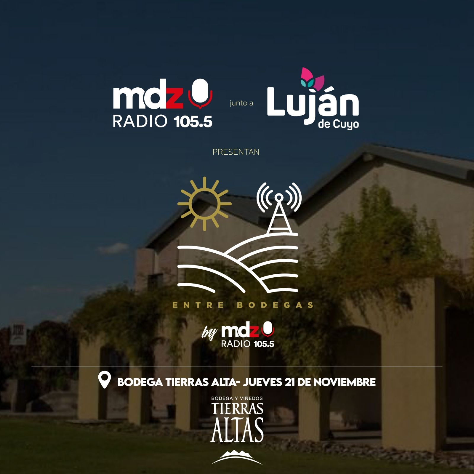 Entre Bodegas es un ciclo de transmisiones en vivo de MDZ Radio 105.5, que se realiza desde las diferentes bodegas ubicadas en Luján de Cuyo, la Tierra del Malbec, y una de las regiones más importantes del mundo en cuanto a producción de vinos de alta calidad. Con más de 170 bodegas, de las cuales 120 cuentan con restaurantes en el lugar, esta iniciativa es una experiencia única para los amantes del vino y la cultura local.