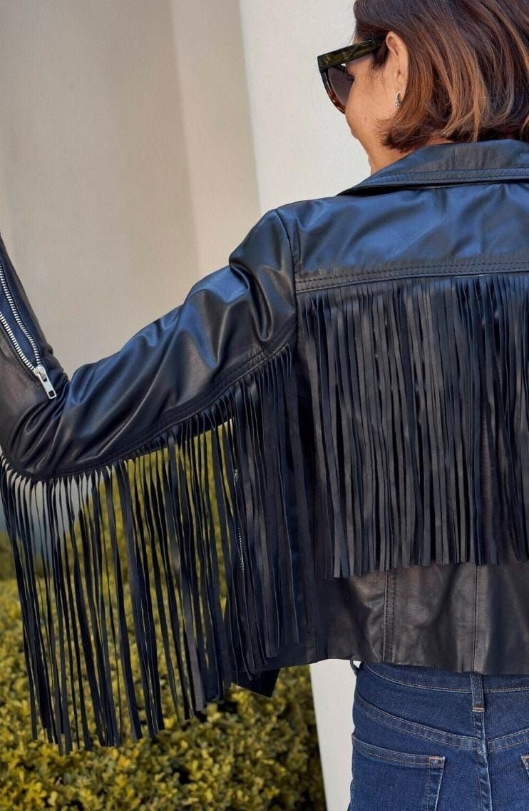 Un abrigo que no falla es la clásica campera de cuero. Para darle un detalle diferente a tu looks y que acompañe el ambiente de los sunset, elegí una campera con detalles de flecos en las espalda. Si buscás un estilo más clásico, inclínate por una campera de cuero con corte de blazer, este no solo te va a mantener abrigada cuando baje el sol, sino que va a ser el complemento ideal de un estilismo más formal.