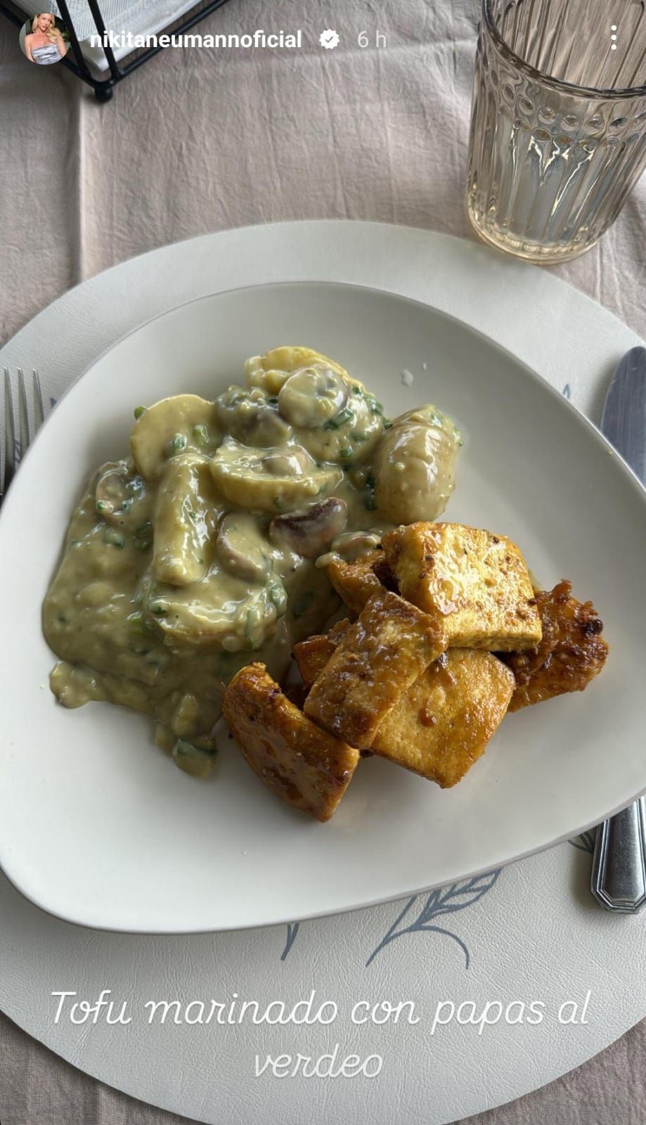 Además de esa realidad, Nicole tiene una casa con un gran patio en el que tiene a decenas de perros adoptados, recogidos de situación de calle. Lo que también evidencia su compromiso con los animales; en ese contexto, la celebridad mostró su plato vegano: Tofu marinado con papas al verdeo. ¡Una delicia!