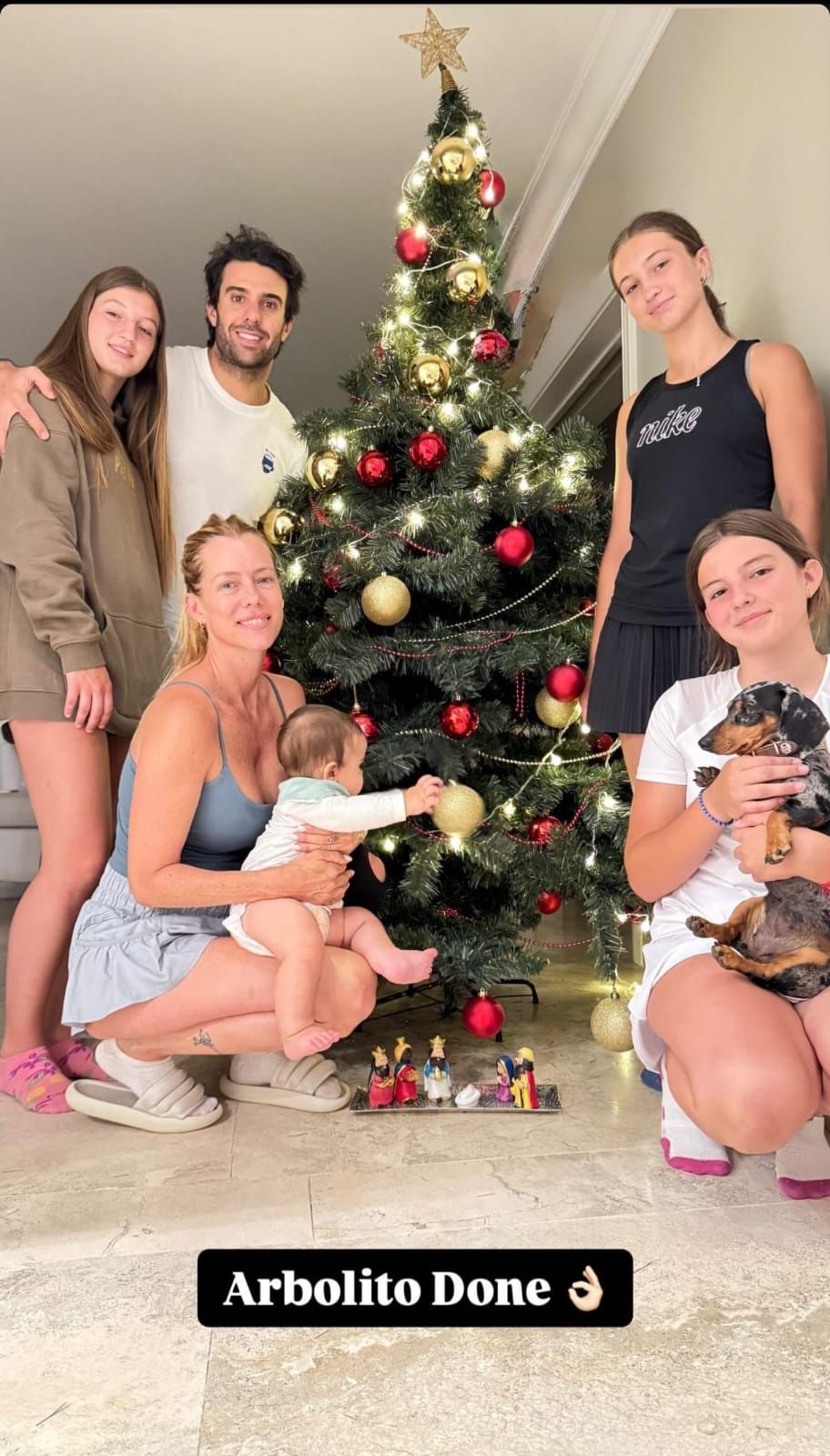 La madre de las hijas del futbolista Fabián Cubero, con quien ella estuvo en pareja durante años, disfrutó junto a sus tres niñas, su actual esposo Manuel Urcera y su pequeño bebé Cruz el momento de armar el arbolito de Navidad. Sin lugar a dudas, Nicole respeta las tradiciones sociales relativas a la religión y las festividades típicas.