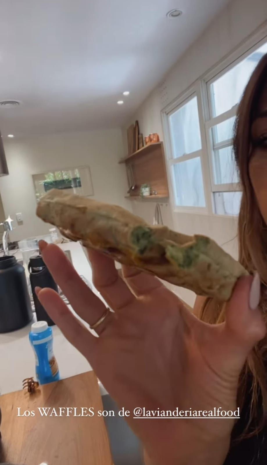 "Estos son waffles de harina de almendras, con huevo y espinaca. Están increíbles. Los tengo en el freezer, los pongo en la tostadora y y miren cómo quedan. La cantidad de espinaca que tienen", soltó la celebridad. Catherine Fulop acompañó su waffle con huevos a la plancha pero aseguró que se pueden acompañar también con palta o tomate.