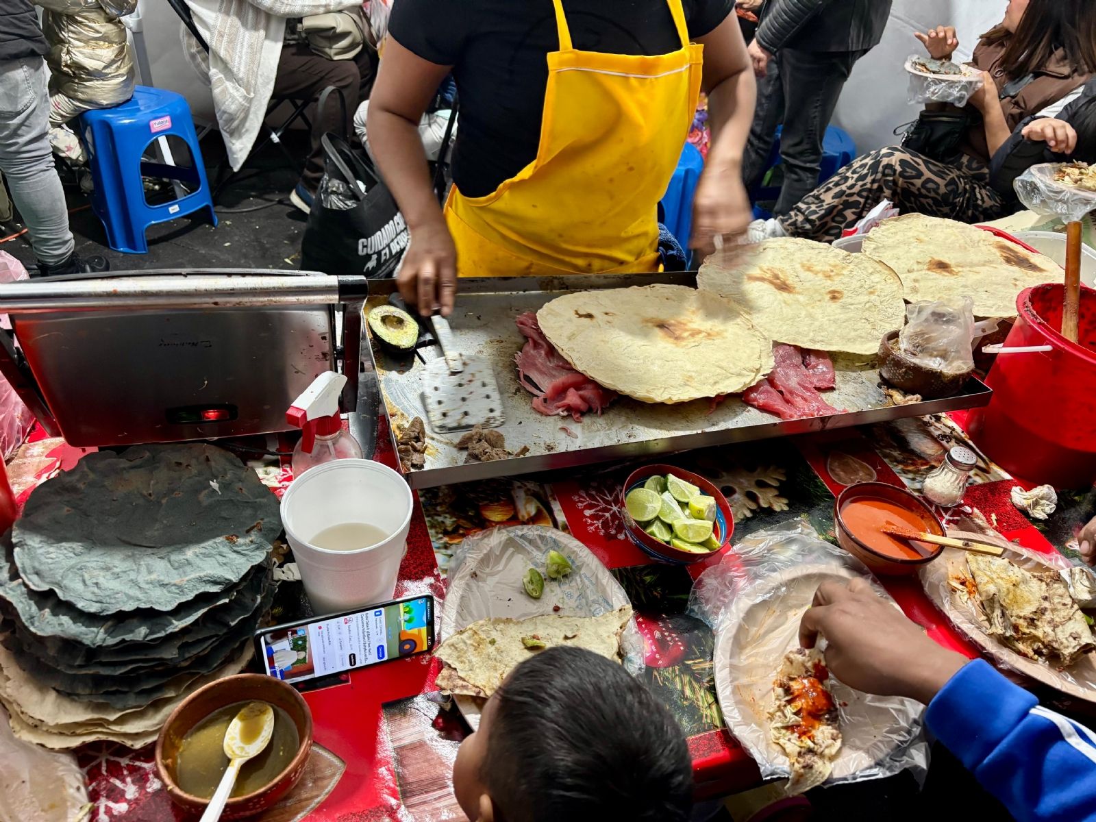Sigo caminando y veo que la fiesta también es de los vendedores ambulantes, de los que se disfrazan y piden una foto por una propina, de los que llevan su comida regional en una carpa o en una canasta, de los que venden globos, los que llevan sus artesanías, los que van con un palo de selfie que gira alrededor de una base para que todos tengan su video, los que venden coronas con luces, máscaras de Papá Noel y del Grinch, globos y lucecitas que vuelan por el aire. También festejan los que se paran debajo de una máquina que fabrica una especie de espuma seca que no moja pero recrea la nieve que cae en las navidades del hemisferio norte, región a la que México pertenece, sin el beneficio de pintarse de blanco cada 25 de diciembre.