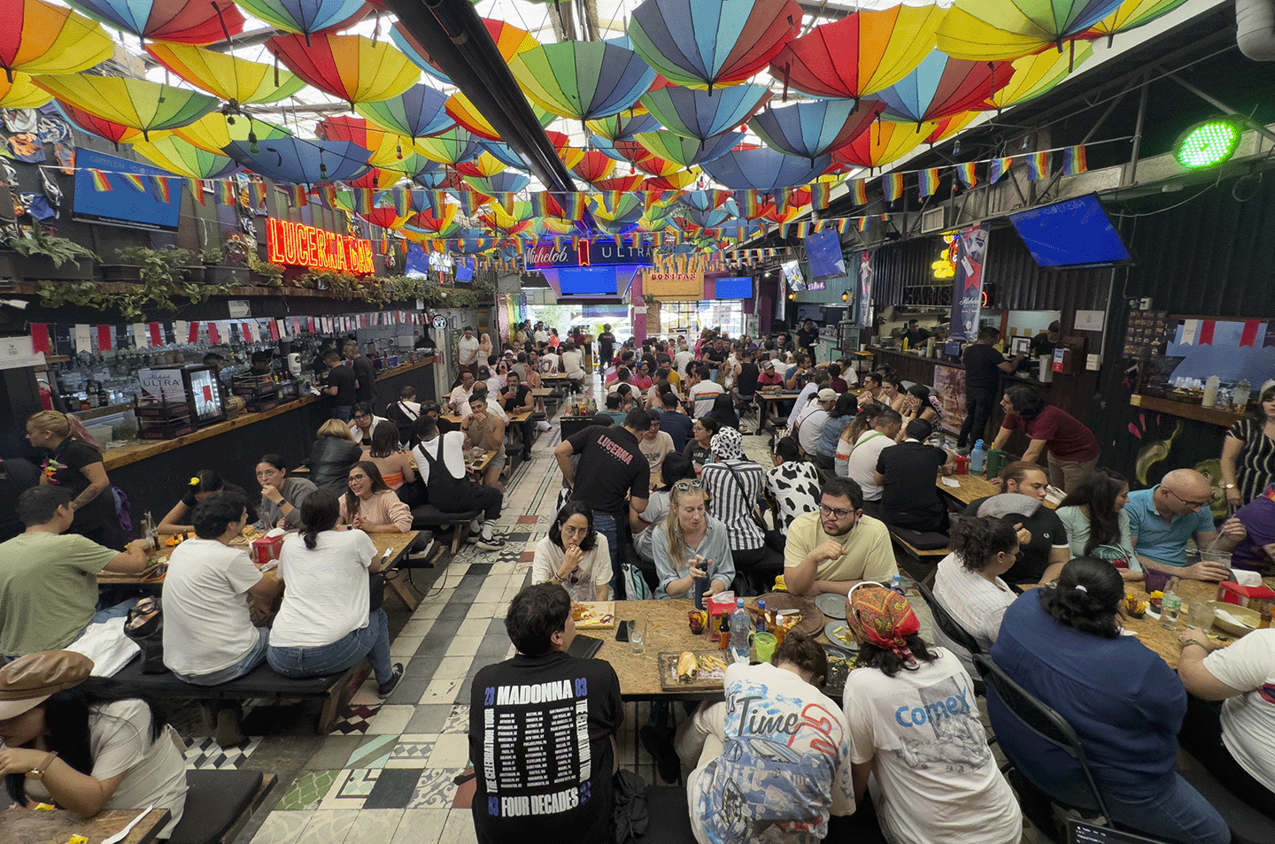 También cuenta con dos espacios que apuntan a un público distinto, el Comedor de los Milagros, que tiene nueve años, y el Lucerna, que tiene siete. Ambos lugares apuntan a un gran patio con mesas compartidas para que el público pueda conversar y mezclarse. Además, hay una amplia variedad de lugares para elegir comidas, de cada país de Latinoamérica. Argentina está representada con el asado y el choripán, dos hitazos de la gastronomía argentina que siguen conquistando al público de Ciudad de México.