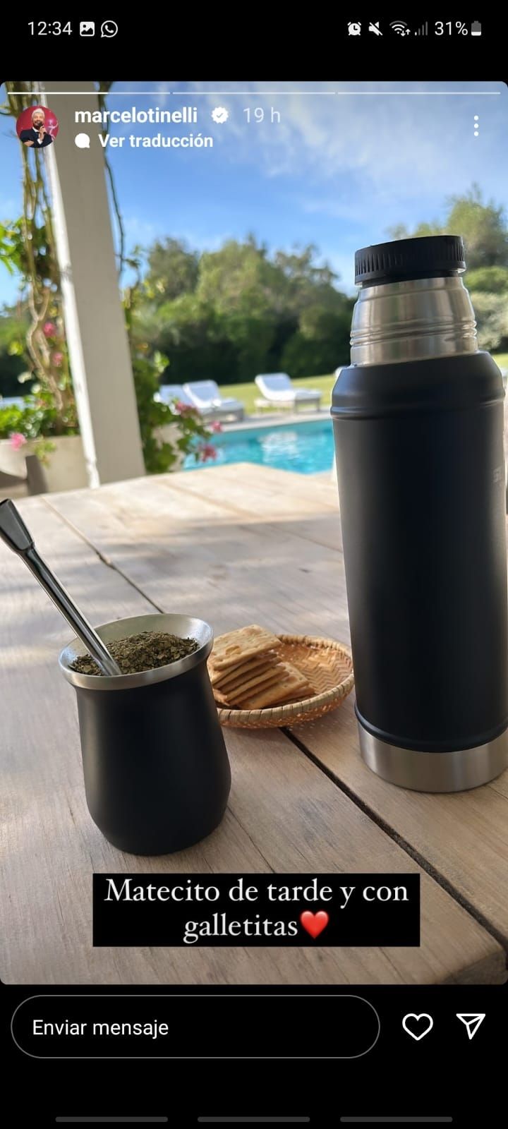 Marcelo Tinelli sorprendió a sus seguidores con su desayuno por cuán poco nutritivo éste fue. El conductor de televisión subió a una de sus historias de Instagram una foto de su enorme casa de Uruguay, donde se puede ver el amplio patio de la misma.
