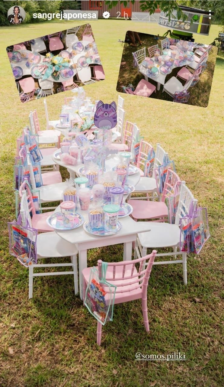 Además de la torta en sí, todo el cumpleaños estuvo decorado con globos, mesas, sillas y vajillas descartables en tonos pastel, donde preponderaron el rosa y verde. "Welcome to my party. Magnolia", reza un cartel ubicado en la entrada a la fiesta de la pequeña.