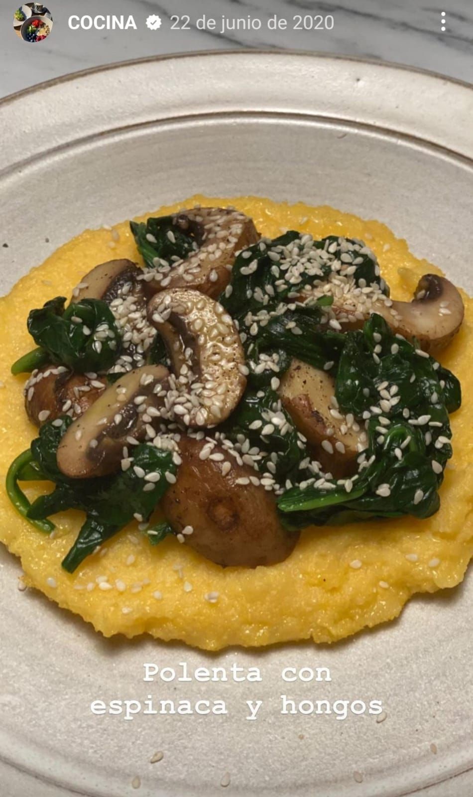 En la imagen que compartió en una de sus historias de Instagram, se puede ver que Juliana hirvió la polenta de la manera tradicional, con queso parmesano, y la esparció en el fondo del plato. Por encima, le colocó espinaca salteada y condimentada a gusto con hongos también salteados. ¡Una delicia!