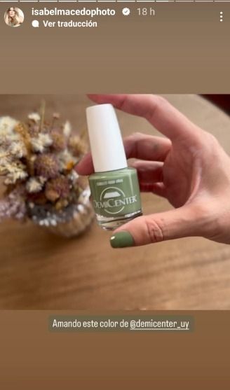 La recomendación que Isabel Macedo les dio a sus seguidores esta vez es que utilicen esmaltes en gel, ya que logran un acabado perfecto en las uñas. La actriz escribió en la historia que compartió cuán contenta estaba con se adquisición: "Amando este color".