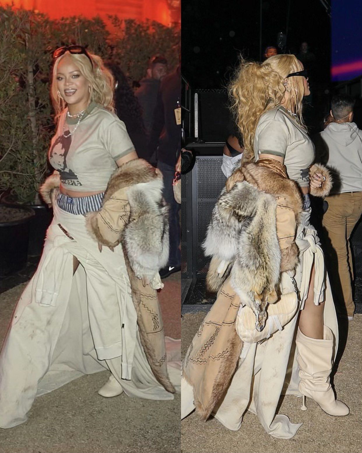 Otro look de Riri para el Coachella, esta vez cuero, peluche y un poco de estilo rockero.