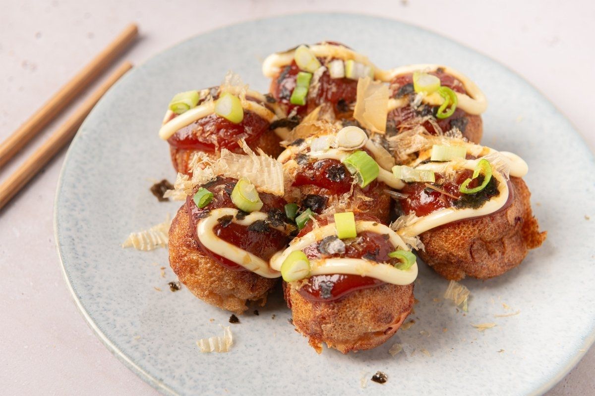 Osaka es el hogar del takoyaki, unas bolitas de masa rellenas de pulpo, cocidas en una plancha especial y cubiertas con salsa takoyaki, mayonesa y copos de bonito seco. Este plato callejero es una delicia que representa la vibrante cultura gastronómica de la ciudad.