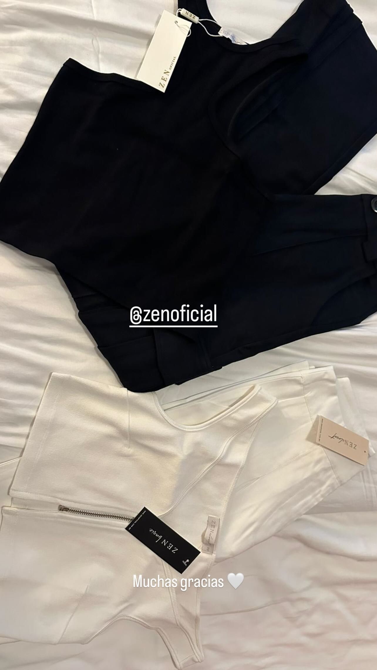 En primer lugar, la influencer compartió un conjunto casual de la firma Zen, conformado por dos pantalones - uno blanco y otro negro - junto con un crop top negro. La marca de origen brasilero cuenta con estas prendas en su tienda online y sus precios son R$ 989 (174 USD) para los pantalones y R$ 299 (52 USD) para el top.